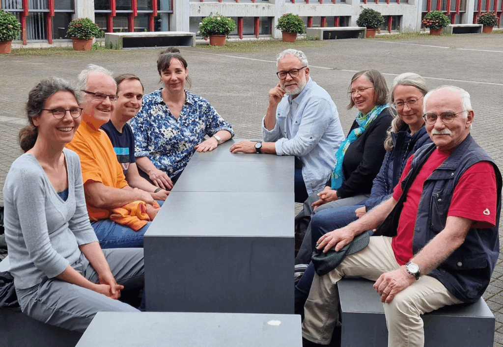 Hier die CED-Gruppe bei der wichtigen Nachbespechung nach der Hospitation bei „Vivid Voices“ mit der Leiterin Claudia Burghard (4. von links).